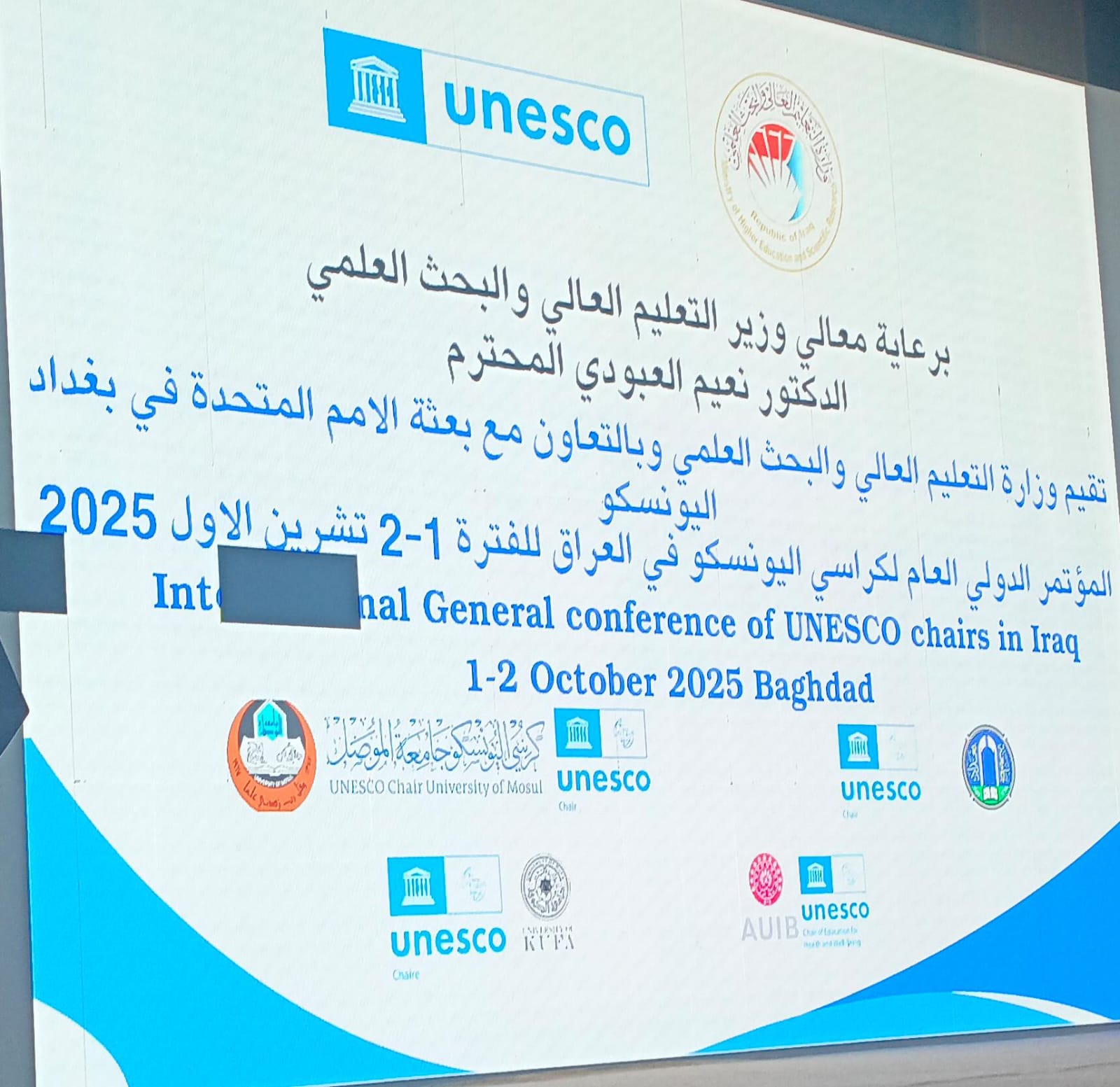 المركزُ العراقيُّ لتوثيق جرائم التطرُّف يشارك في المؤتمر الدولي العام لكراسي اليونسكو في العراق