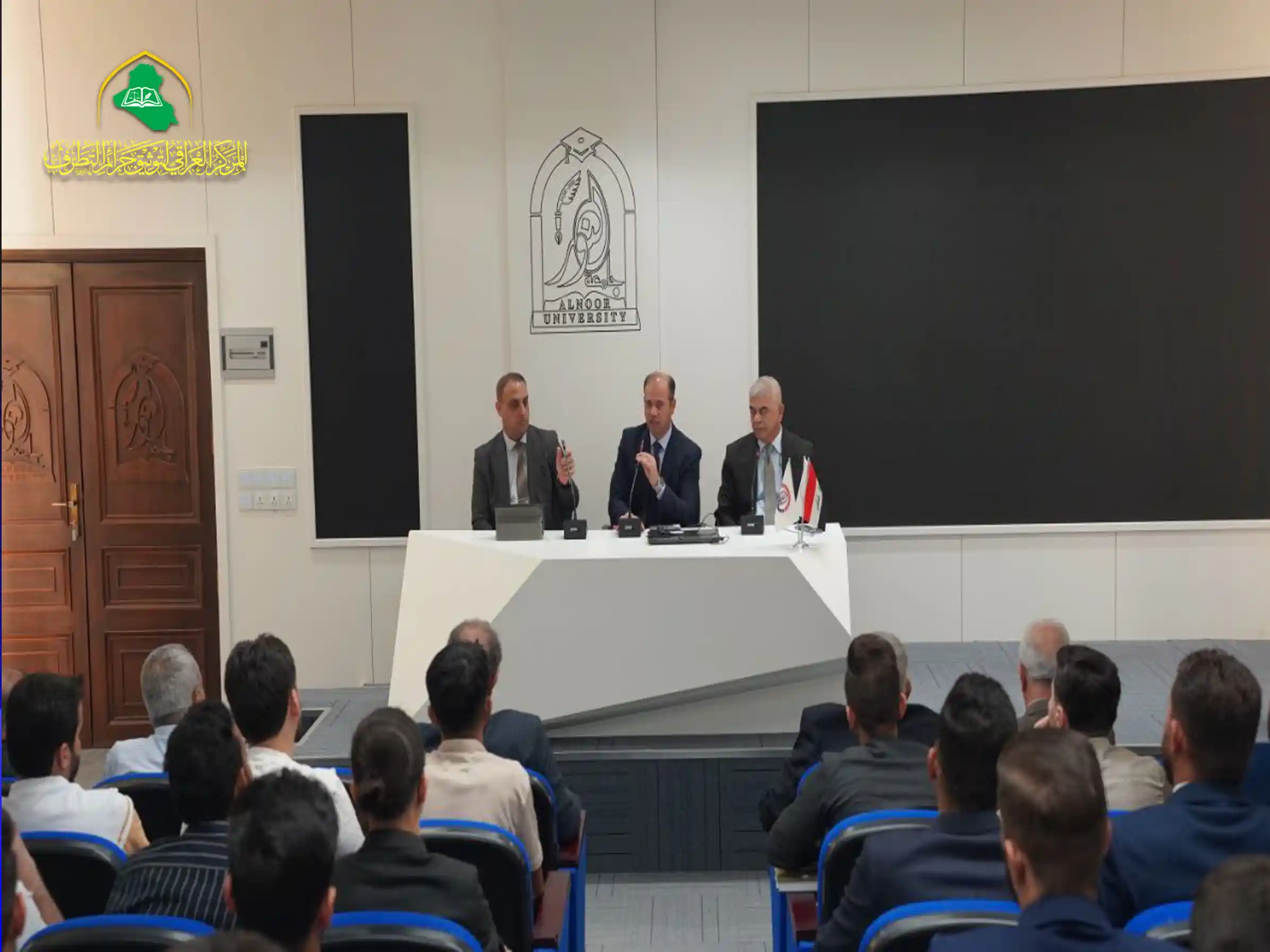 أقام المركز العراقي لتوثيق جرائم التطرف التابع لقسم الشؤون الفكرية والثقافية في العتبة العباسية المقدسة ندوتَهُ الموسومة (التنوُّع الثقافي في العراق: تحديات الدولة وفرص التعايش) بالتعاون مع كلية القانون والعلوم السياسية في جامعة النور في محافظة نينوى، وذلك يوم الثلاثاء الموافق ١٤/ ١٠/ ٢٠٢٥ بمشاركة نخبة من الباحثين، منهم: أ.م.د.أحمد مصطفى علي عميد كلية القانون والعلوم السياسية بجامعة النور، وأ.م.د.بشار رشيد حسين معاون عميد كلية القانون والعلوم السياسية بالجامعة نفسها، وأ.د.قيس ناصر راهي عضو المركز العراقي لتوثيق جرائم التطرُّف، وتناولت الندوة محاورَ عدة، منها: