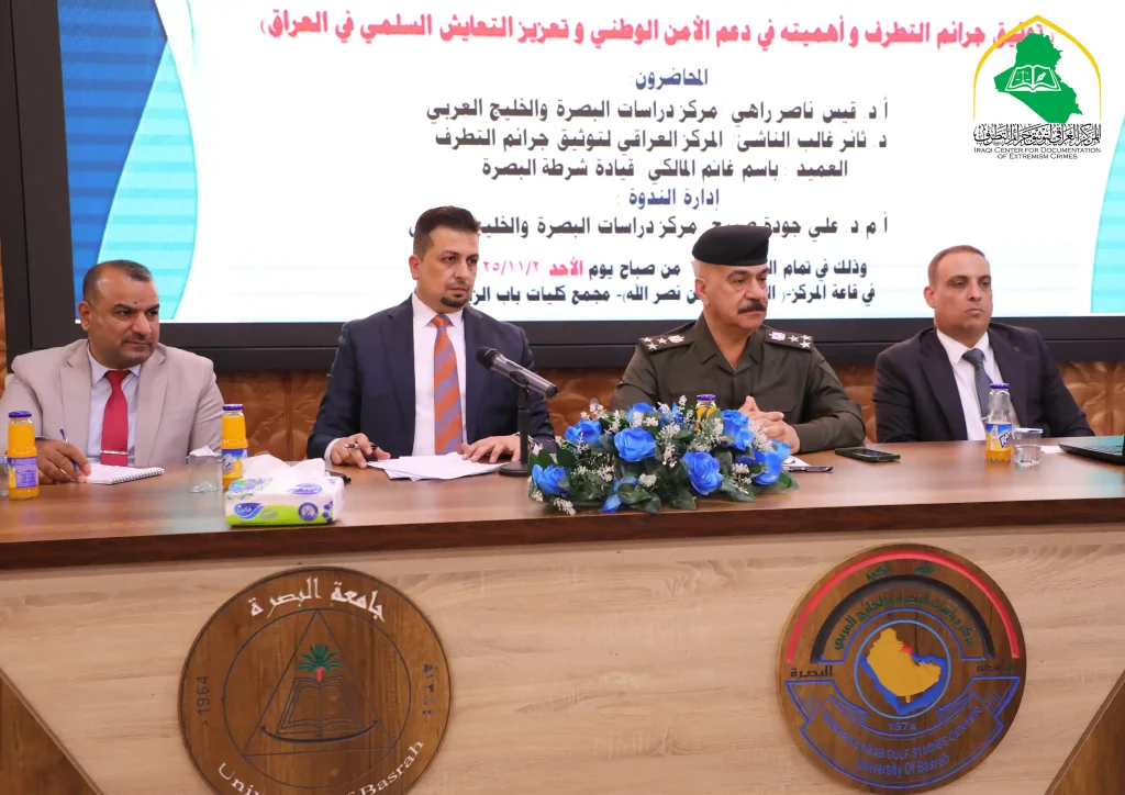أقام المركزُ العراقيُّ لتوثيق جرائم التطرُّف ندوةً علميَّةً في جامعة البصرة موسومةً بـــ (توثيق جرائم التطرُّف وأهميتُهُ في دعم الأمن الوطني وتعزيز التعايش السلمي بالعراق) ذلك بالتعاون مع مركز دراسات البصرة والخليج العربي التابع لجامعة البصرة، في يوم الأحد الموافق ٢/ ١١/ ٢٠٢٥، بمشاركةِ نخبةٍ من أساتيذ الجامعات، والقيادات الأمنية، وناقشتِ الندوةُ محاورَ عديدةً في […]