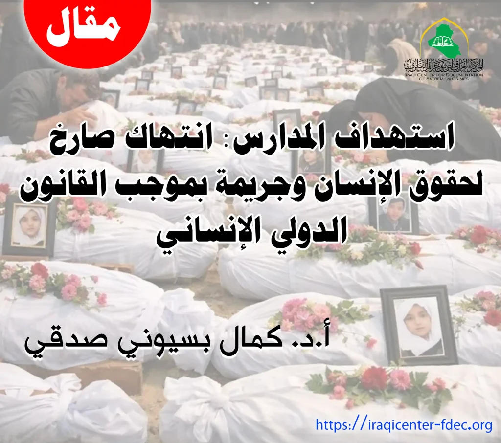 في حادثة مأساوية تظهر حجم الانتهاكات ضد المدنيين في النزاعات المسلحة، استهدفت مدرسة ” شجرة طيبة الابتدائية” مدينة ميناب في محافظة هرمزغان الإيرانية، بتاريخ 28- 2- 2026م من قبل كيان الاحتلال الإسرائيلي والولايات المتحدة الأمريكية، ما أسفر عن مقتل ( 165 تلميذة وتلميذاً) والمؤلم جدا أن أكثر من (90 ضحية ) لم يتم التعرف عليها بسبب الحروق وشدة الإصابات، وإصابة (96أخرى) بجروح متفاوتة، إلى جانب إصابة العديد من المعلمات والكوادر التعليمية، وهذا الهجوم لم يدمّر مجرد مبنى، بل استهدف حياة الأطفال والمعلمات ومستقبل التعليم بأكمله، ما يجعله جريمة حرب ومجزرة إنسانية واضحة.