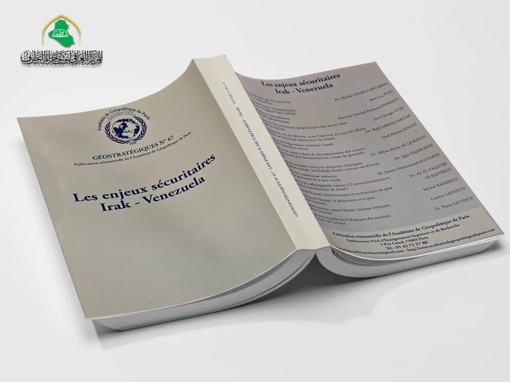 أصدرت أكاديمية الجيوبوليتيك في باريس كتابًا علميًا باللغة الفرنسية، بمشاركة فريق بحثي متخصص من المركز العراقي لتوثيق جرائم التطرّف، حمل عنوان “القضايا الأمنية في العراق وفنزويلا”، وتضمّن مجموعة من البحوث الأكاديمية التي تناولت جرائم نظام البعث، والإرهاب، والتطرّف، ضمن مقاربة علمية مقارنة.